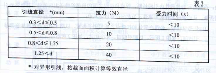 ①印剛電路板上安裝孔的間隔要與弓I線的問隔一致,插入時不要硬拉引線,以免造成引線秘管殼同的過大1萱力,見圖4.沿引線軸方向的引線拉力與弓l線直徑有關,操作時不應超過表二的規定值