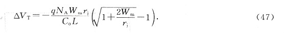 其中NA為襯底的摻雜濃度.wm為耗盡區寬度,ri為結深度,L為溝道長度,而C。為每單位面積的柵極氧化層電容.