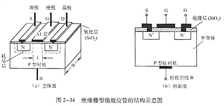 絕緣柵型場(chǎng)效應(yīng)管的構(gòu)造表示圖如圖2-34所示。
