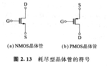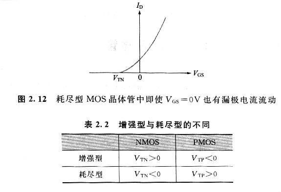 圖2. 12示出耗盡型NMOS晶體管的電流—電壓特性。表2.2列出了MOS晶體管的種類以及閾值電壓的極性。
