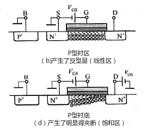 另外,當VGS增加時,由丁感應溝道變厚,溝道電阻減小,飽和漏極電流會相應增大。