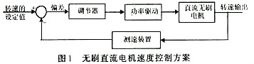 對無刷直流電機轉速的控制即可采用開環(huán)控制,也可采用閉環(huán)控制。與開環(huán)控制相比,速度控制閉環(huán)系統(tǒng)的機械特性有以下優(yōu)越性:閉環(huán)系統(tǒng)的機械特性與開環(huán)系統(tǒng)機械特性相比,其性能大大提高;理想空載轉速相同時,閉環(huán)系統(tǒng)的靜差率(額定負載時電機轉速降落與理想空載轉速之比)要小得多;當要求的靜差率相同時, 閉環(huán)調速系統(tǒng)的調速范圍可以大大提高。無刷直流電機的速度控制方案如圖1所示。