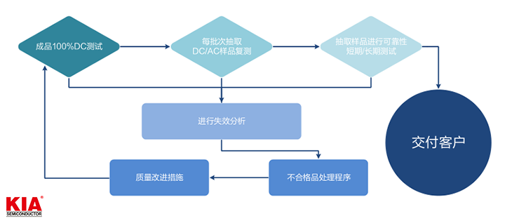 KIA半導體執行全面質量管理體系,是將所有產品從芯片設計開始,一直貫穿到客戶使用的全過程質量跟蹤和監控。