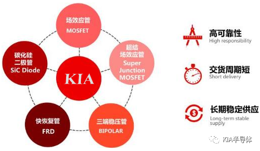 KIA半導體的產品涵蓋工業、新能源、交通運輸、綠色照明四大領域,不僅包括光伏逆變及無人機、充電樁、這類新興能源,也涉及汽車配件、LED照明等家庭用品。KIA專注于產品的精細化與革新,力求為客戶提供最具行業領先、品質上乘的科技產品。