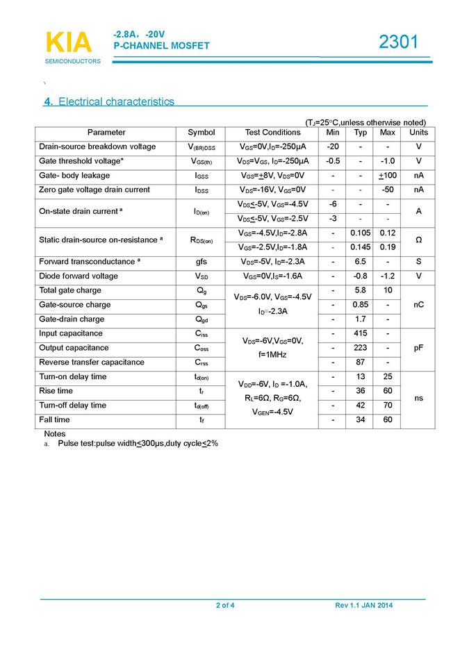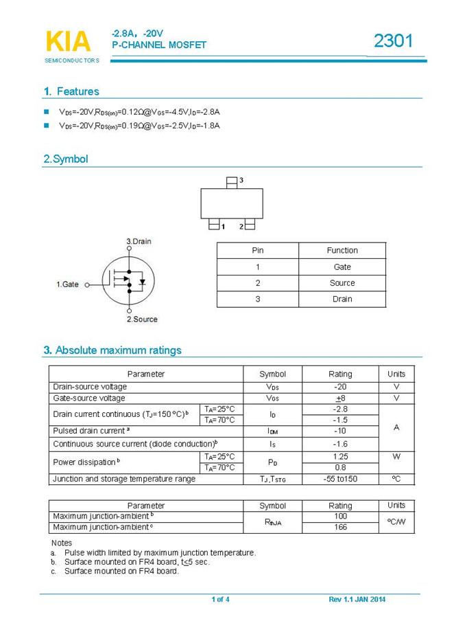 參數: ID(A): -2.8    BVDSS(V): -20    RDS(ON): 0.19    Qg(nC): 10    Package: SOT-23