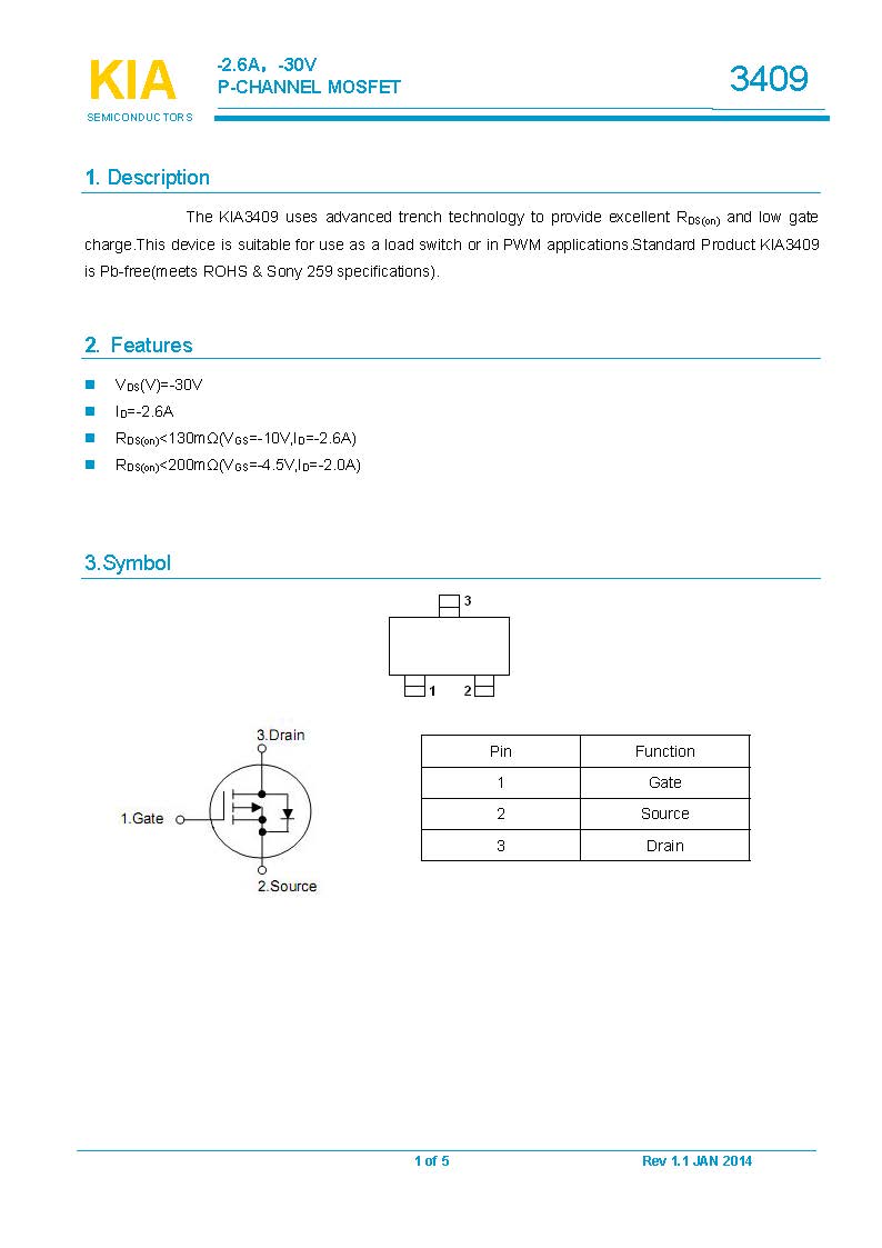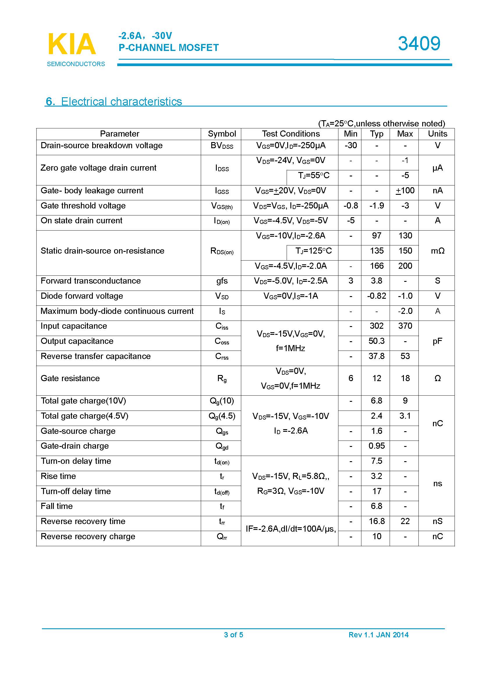 參數: ID(A): -2.6    BVDSS(V): -30    RDS(ON): 0.13    Qg(nC): 9    Package: SOT-23