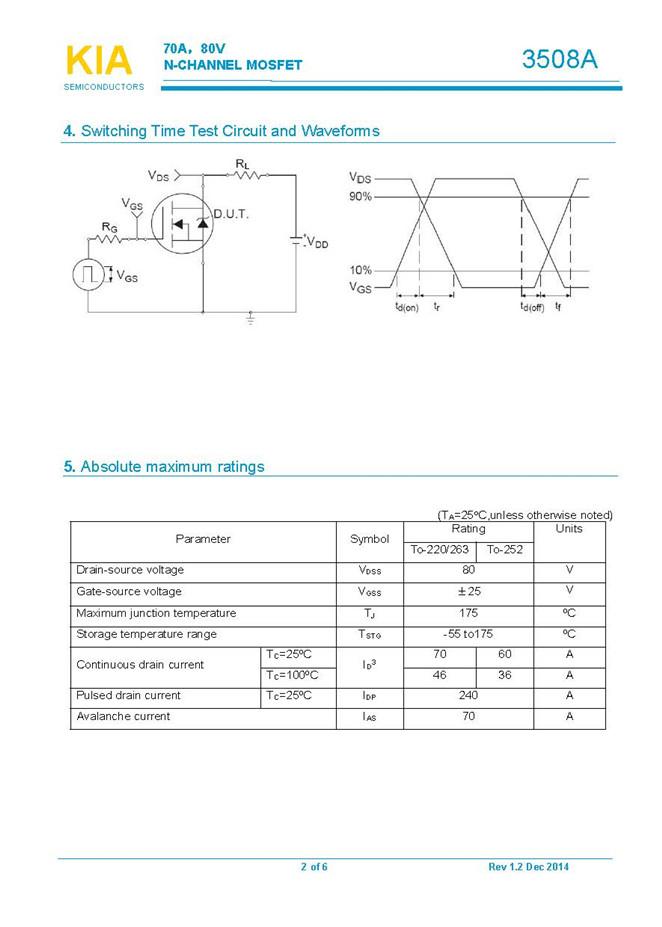 參數(shù): ID(A): 70 BVDSS(V): 80 RDS(ON): 0.011 Qg(nC): 60 Package: TO-252、TO-263、TO-220