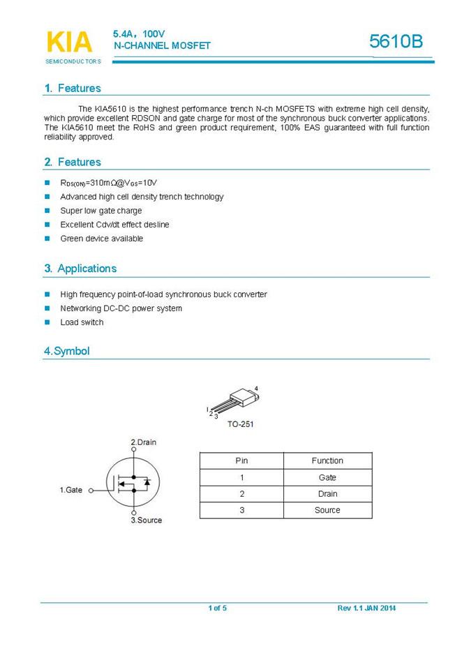 參數(shù): ID(A): 5.4    BVDSS(V): 100    RDS(ON): 0.31    Qg(nC): 9.6    Package: TO-251