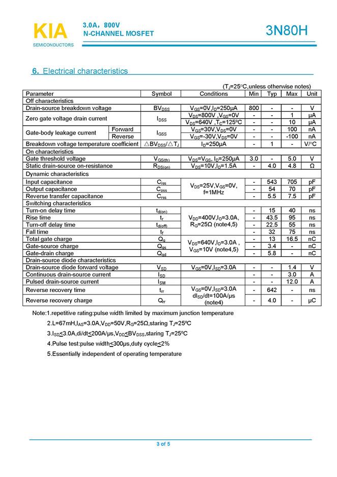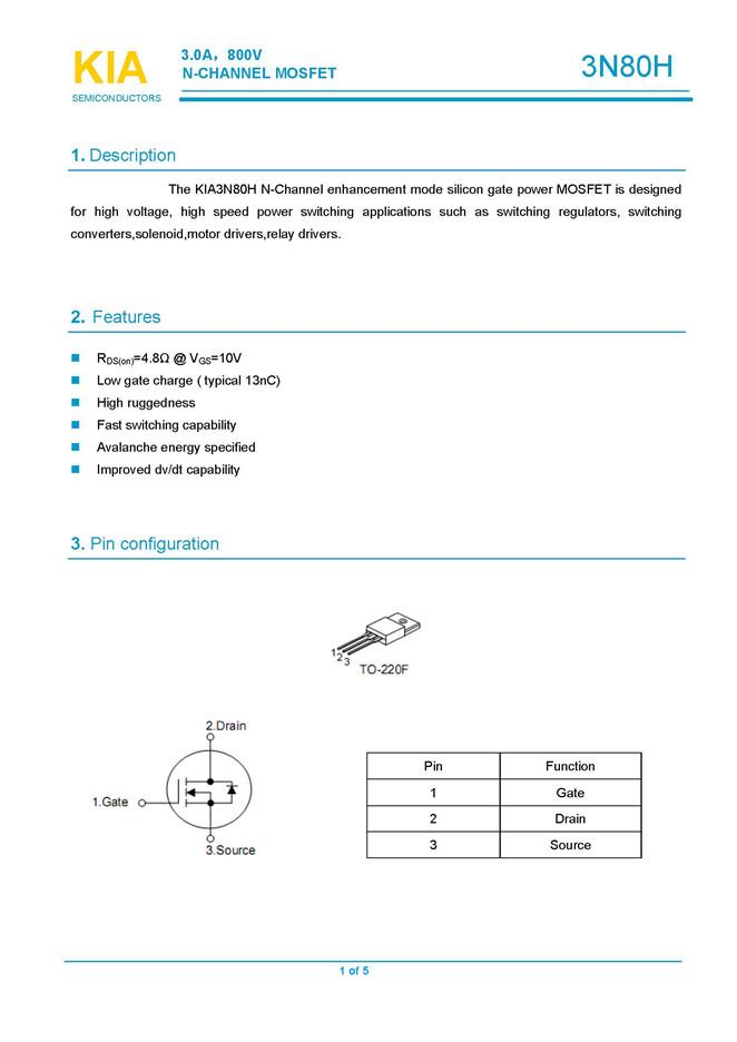 參數(shù): ID(A): 3 BVDSS(V): 800 RDS(ON): 0.0048 Qg(nC): 13 Package: TO-220F
