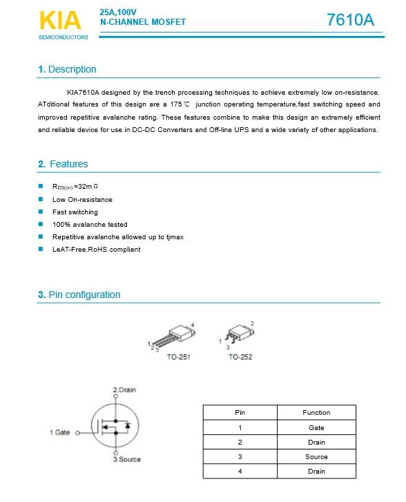參數: ID(A): 25    BVDSS(V): 100    RDS(ON): 0.032    Qg(nC): 55    Package: TO-251