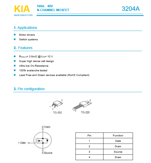 參數: ID(A): 90    BVDSS(V): 40    RDS(ON): 0.0038    Qg(nC): 55    Package: TO-252 TO-3204A