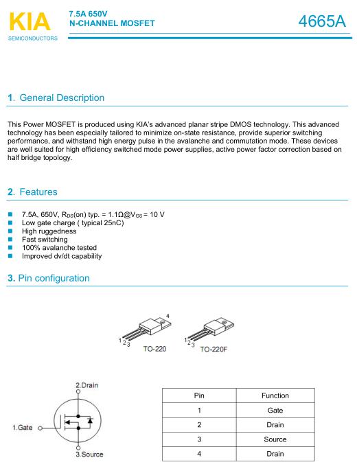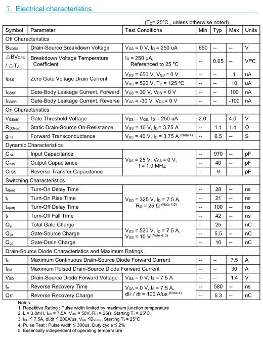 參數: ID(A): 7.5    BVDSS(V): 650    RDS(ON): 1.4    Qg(nC): 25    Package: TO-220F