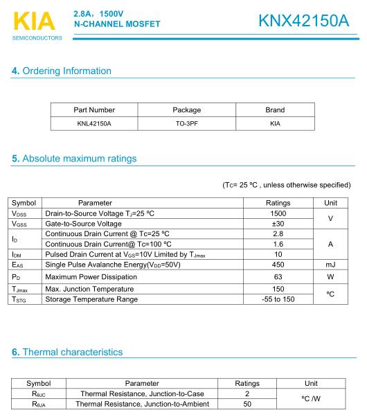 參數(shù): ID(A): 2.8A BVDSS(V): 1500V RDS(ON): 6.5 Qg(nC): 35 Package: TO-3PF