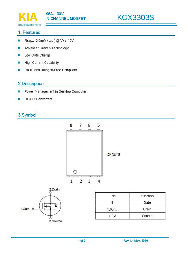 參數(shù): ID(A): 95 BVDSS(V): 30 RDS(ON): 2.2 Qg(nC): 20 Package: DFN5*6