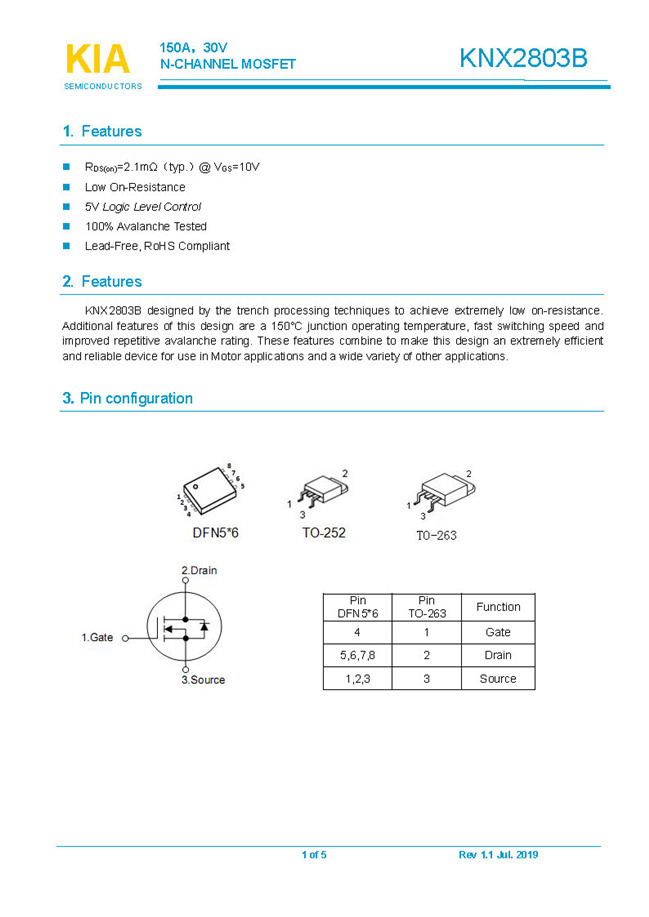 參數: ID(A): 150    BVDSS(V): 30    RDS(ON): 2.1    Qg(nC): 90    Package: TO-252.TO-263.DFN5*6