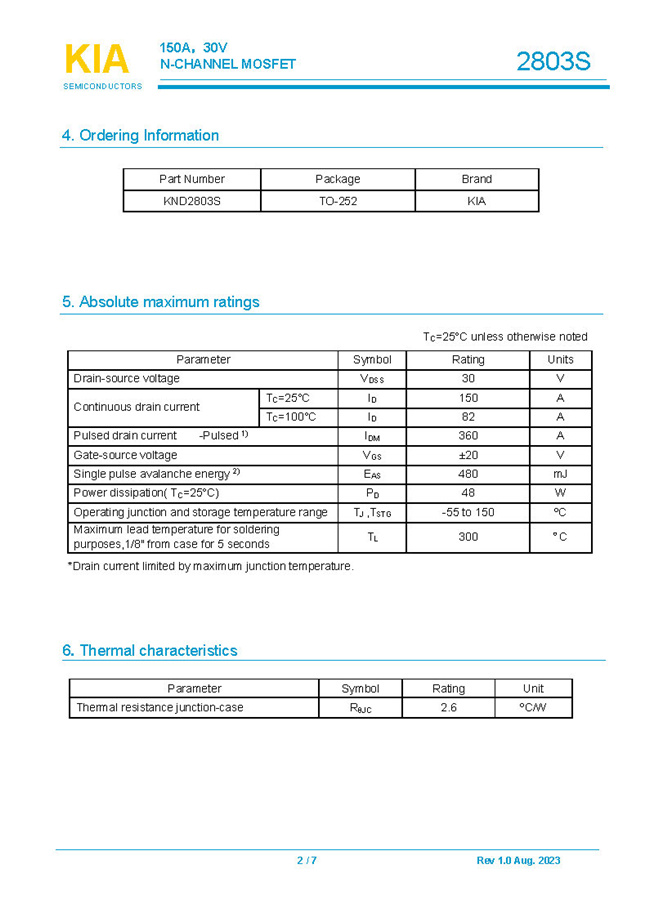 參數: ID(A): 150 BVDSS(V): 30 RDS(ON): 2.1 Qg(nC): 112 Package: TO-252