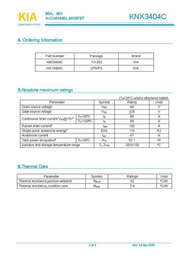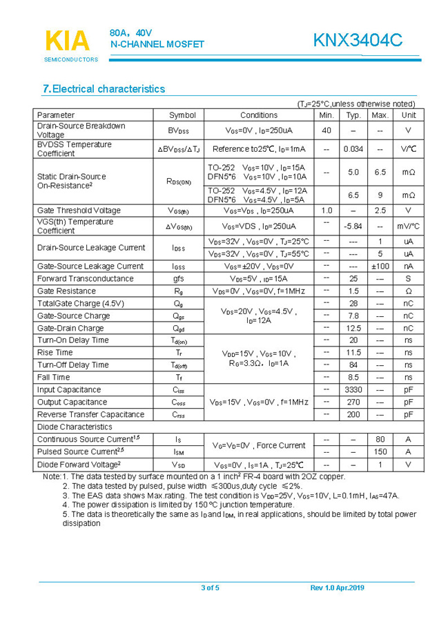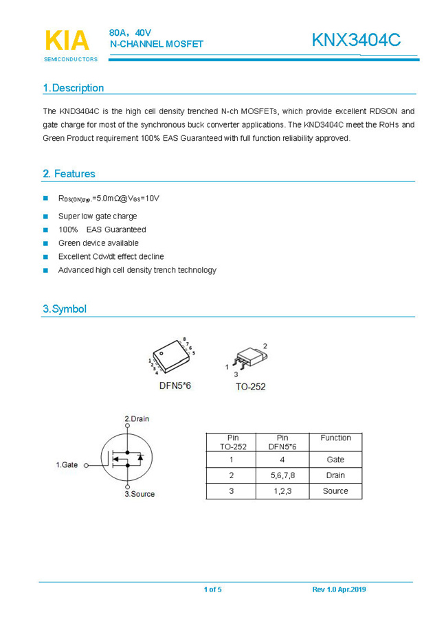 參數: ID(A): 80 BVDSS(V): 40 RDS(ON): 5 Qg(nC): 28 Package: DFN5*6.TO-252