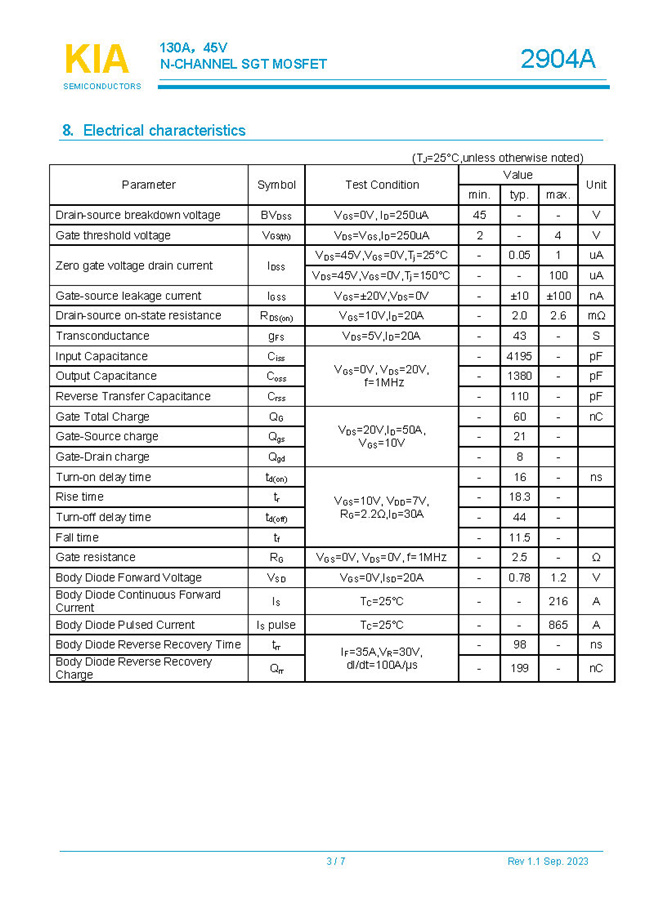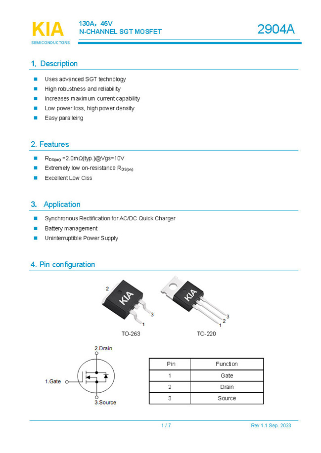 參數: ID(A): 130    BVDSS(V): 45    RDS(ON): 2    Qg(nC): 60    Package: TO-263.TO-220