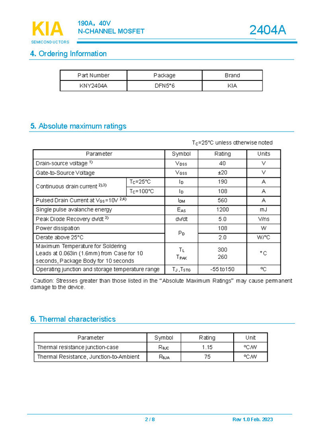 參數: ID(A): 190 BVDSS(V): 40 RDS(ON): 2.2 Qg(nC): 94 Package: DFN5*6