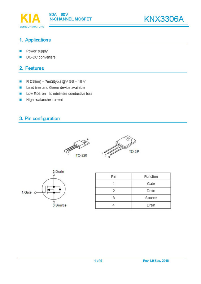 參數: ID(A): 80 BVDSS(V): 60 RDS(ON): 7mΩ Qg(nC): 73 Package: TO-220