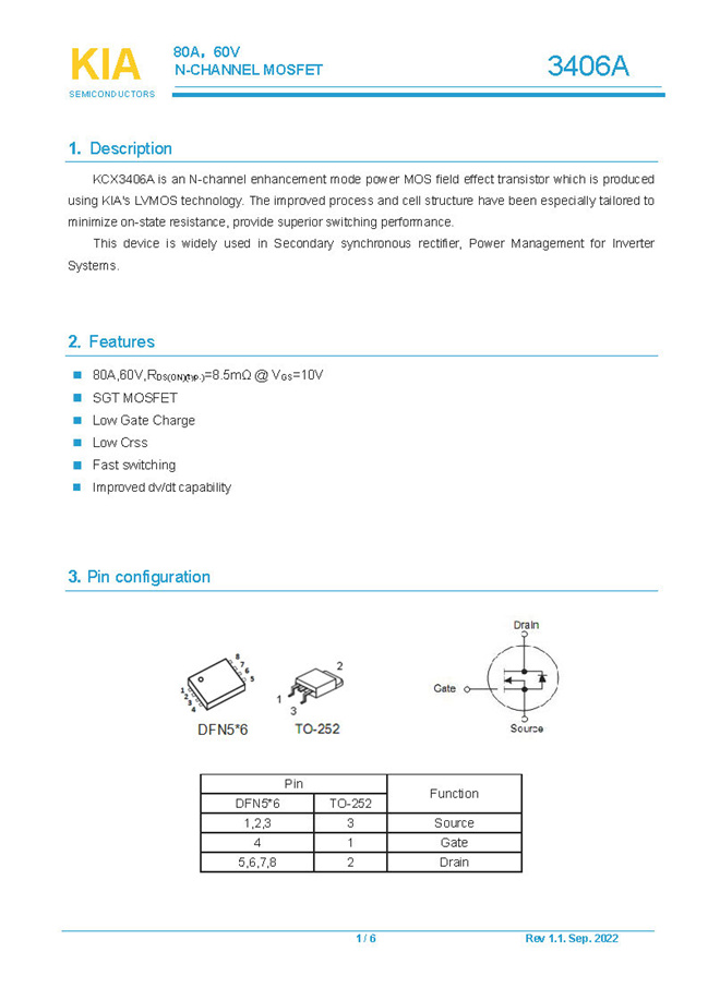 參數(shù): ID(A): 80 BVDSS(V): 60 RDS(ON): 8.5mΩ Qg(nC): 16.8 Package: DFN5*6/TO-252