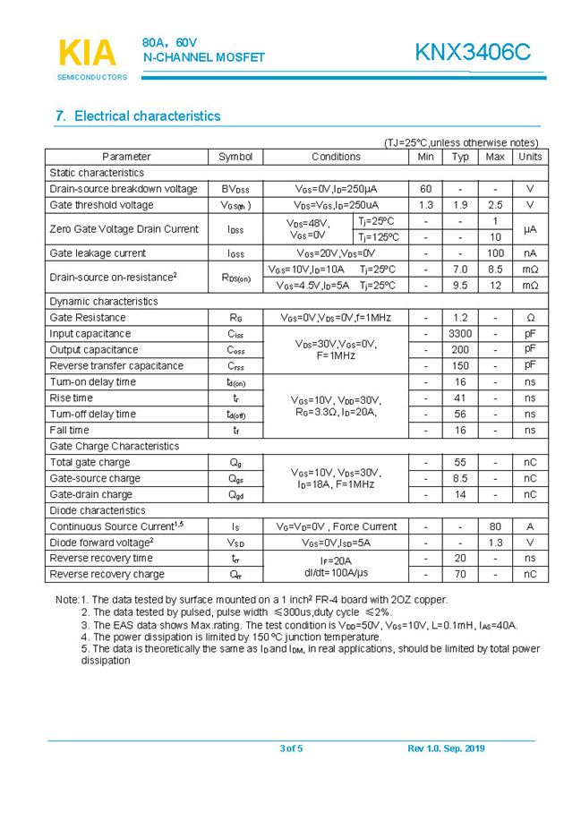 參數(shù): ID(A): 80 BVDSS(V): 60 RDS(ON): 7.0mΩ Qg(nC): 55 Package: DFN5*6