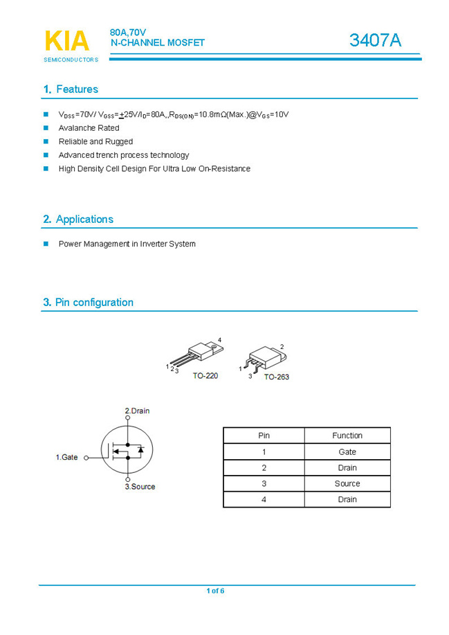 參數: ID(A): 80    BVDSS(V): 70    RDS(ON): 10.8mΩ    Qg(nC): 73    Package: TO-220/263