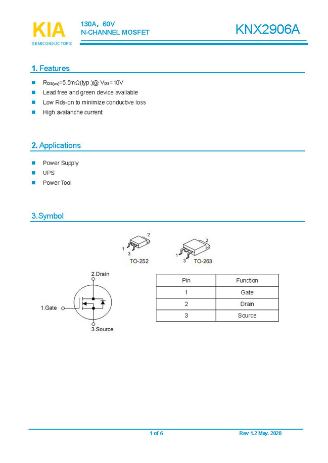 參數(shù): ID(A): 130 BVDSS(V): 60 RDS(ON): 5.5mΩ Qg(nC): 66.34 Package: TO-252.TO-263