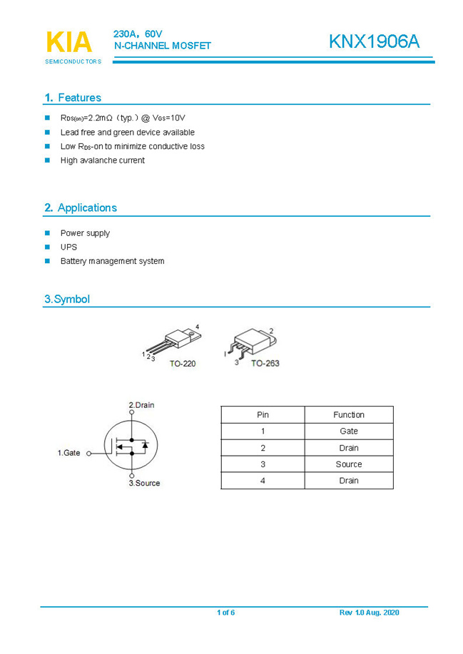 參數(shù): ID(A): 230 BVDSS(V): 60 RDS(ON): 2.2mΩ Qg(nC): 182 Package: TO-263.TO-220
