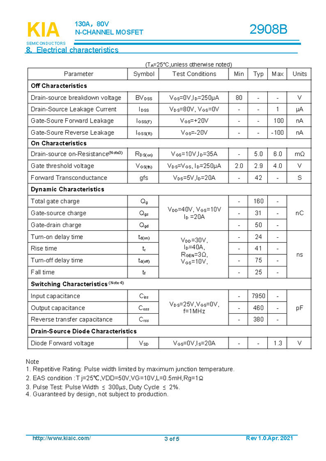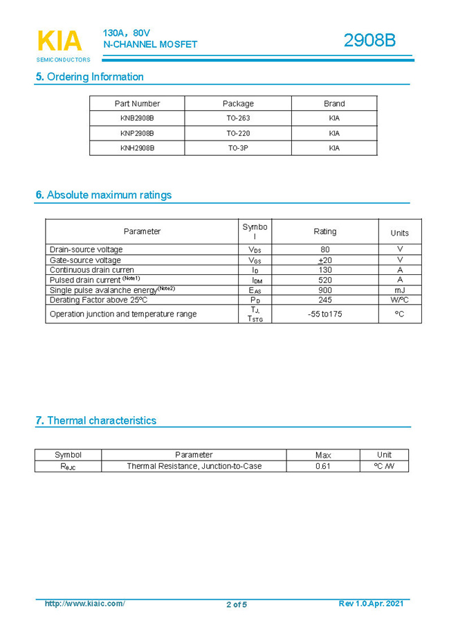 參數(shù): ID(A): 130 BVDSS(V): 80 RDS(ON): 5.0mΩ Qg(nC): 160 Package: TO-220.263.3P