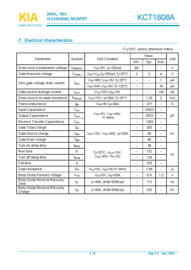 參數: ID(A): 240 BVDSS(V): 80 RDS(ON): 1.25mΩ Qg(nC): 205 Package: TOLL-8
