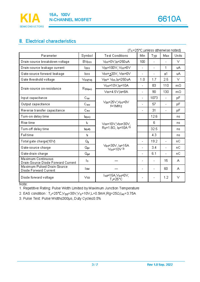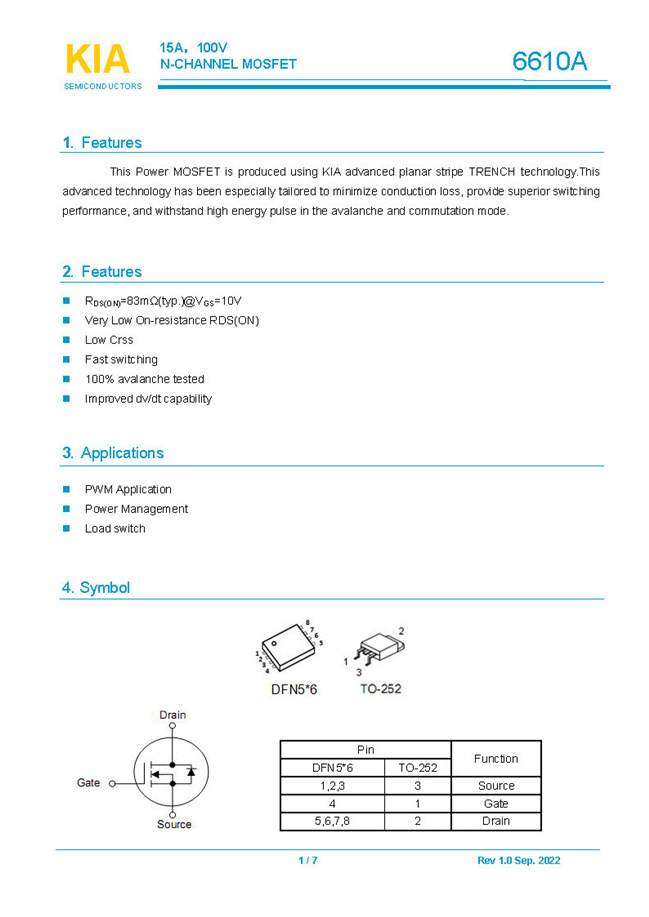 參數: ID(A): 15    BVDSS(V): 100    RDS(ON): 83mΩ    Qg(nC): 19.2    Package: TO-252.DFN5*6