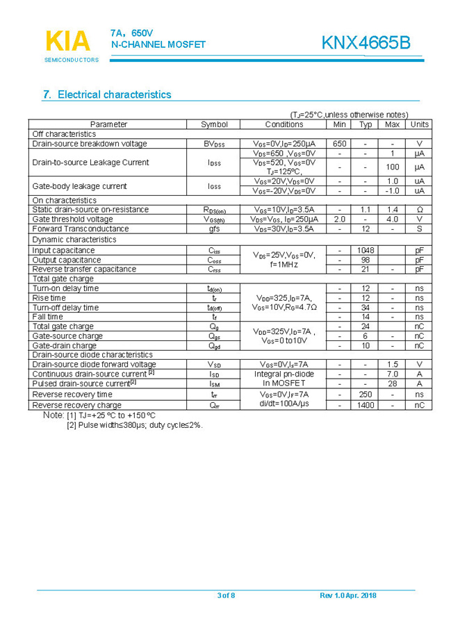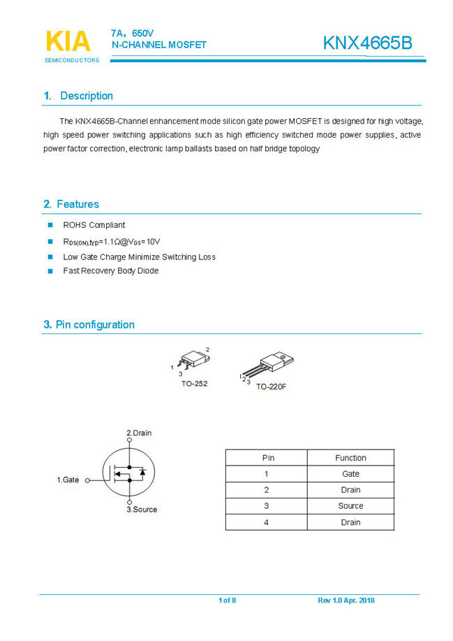 參數: ID(A): 7    BVDSS(V): 650    RDS(ON): 1.1Ω    Qg(nC): 24    Package: TO-220F.TO-252