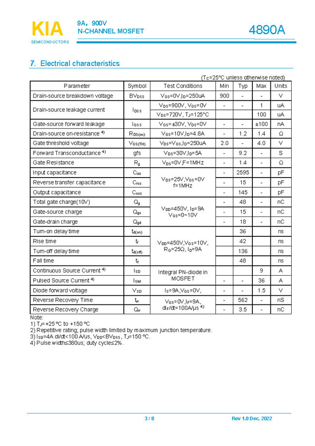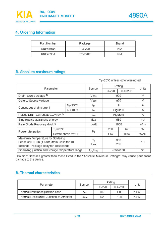 參數: ID(A): 9    BVDSS(V): 900    RDS(ON): 1.2Ω    Qg(nC): 48    Package: TO-220.TO-220F