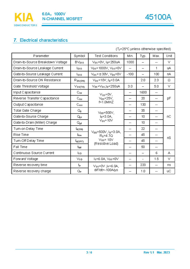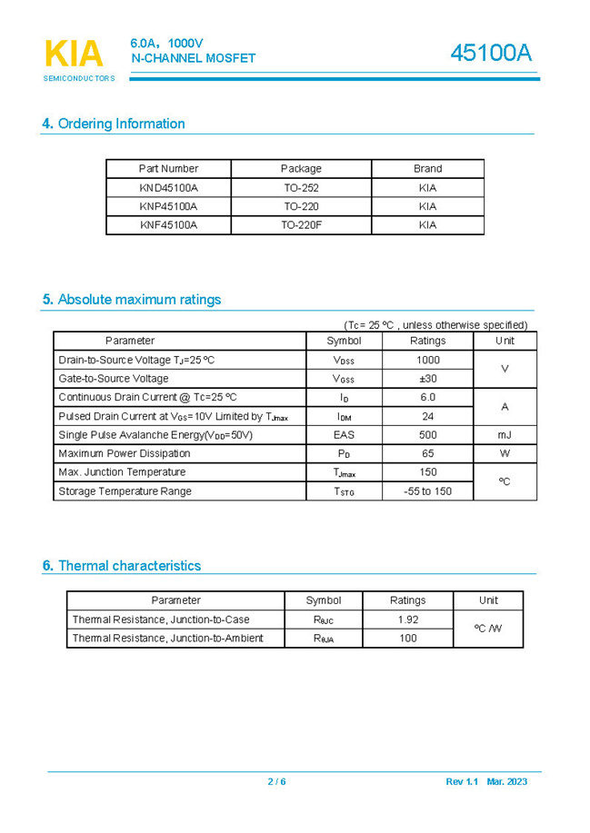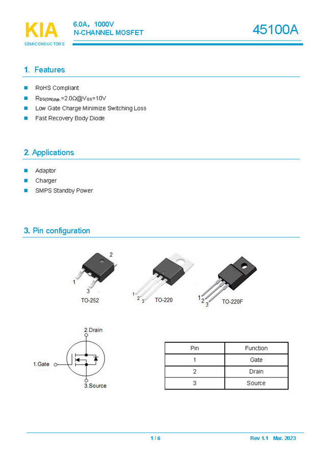 參數: ID(A): 6 BVDSS(V): 1000 RDS(ON): 2Ω Qg(nC): 35 Package: TO-252.TO-220.TO-220F