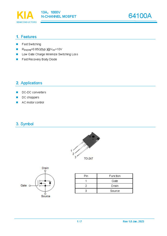 參數(shù): ID(A): 13 BVDSS(V): 1000 RDS(ON): 0.85Ω Qg(nC): 82 Package: TO-247
