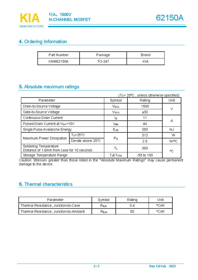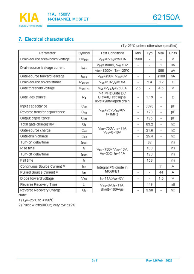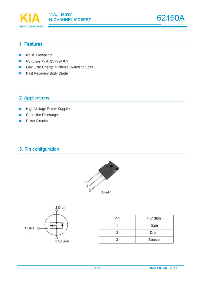 參數: ID(A): 11    BVDSS(V): 1500    RDS(ON): 2.4Ω    Qg(nC): 83.2    Package: TO-247