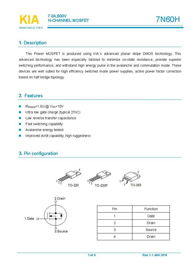 參數(shù): ID(A): 7 BVDSS(V): 600 RDS(ON): 1.2 Qg(nC): 27 Package: TO-263、TO-220、TO-220F