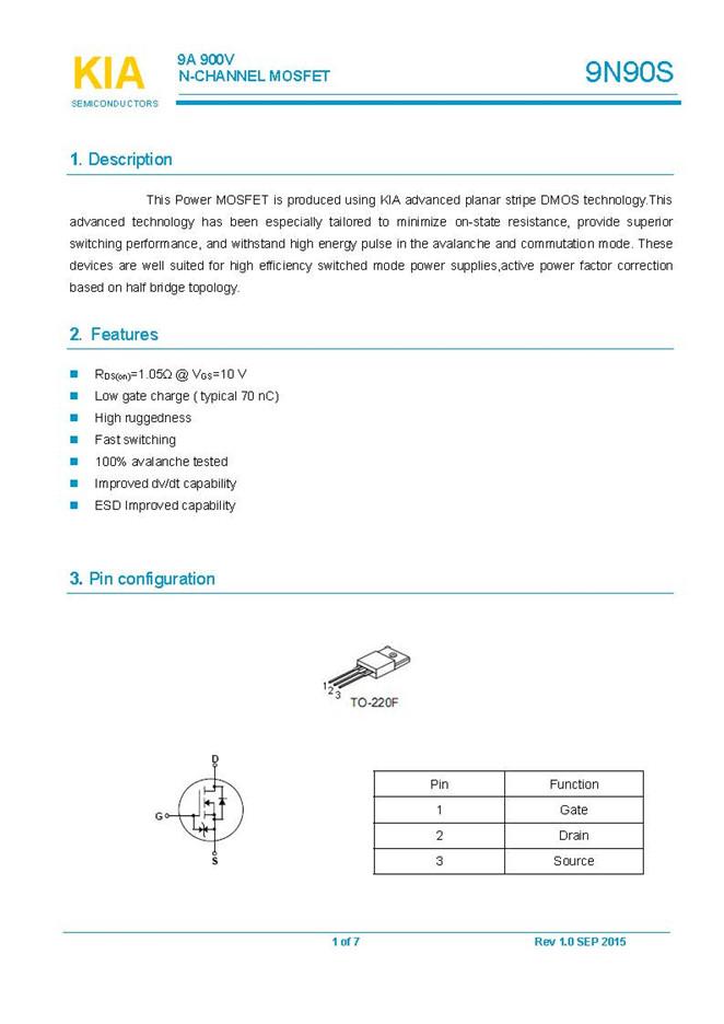 參數(shù): ID(A): 9 BVDSS(V): 900 RDS(ON): 1.05 Qg(nC): 70 Package: TO-220F
