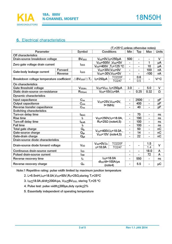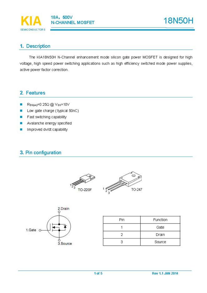 參數: ID(A): 18    BVDSS(V): 500    RDS(ON): 0.32    Qg(nC): 50    Package: TO-220F、TO-247